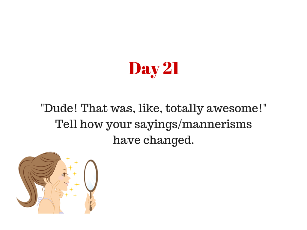 “Dude! That was, like, totally awesome!” Tell how your sayings/mannerisms have changed.