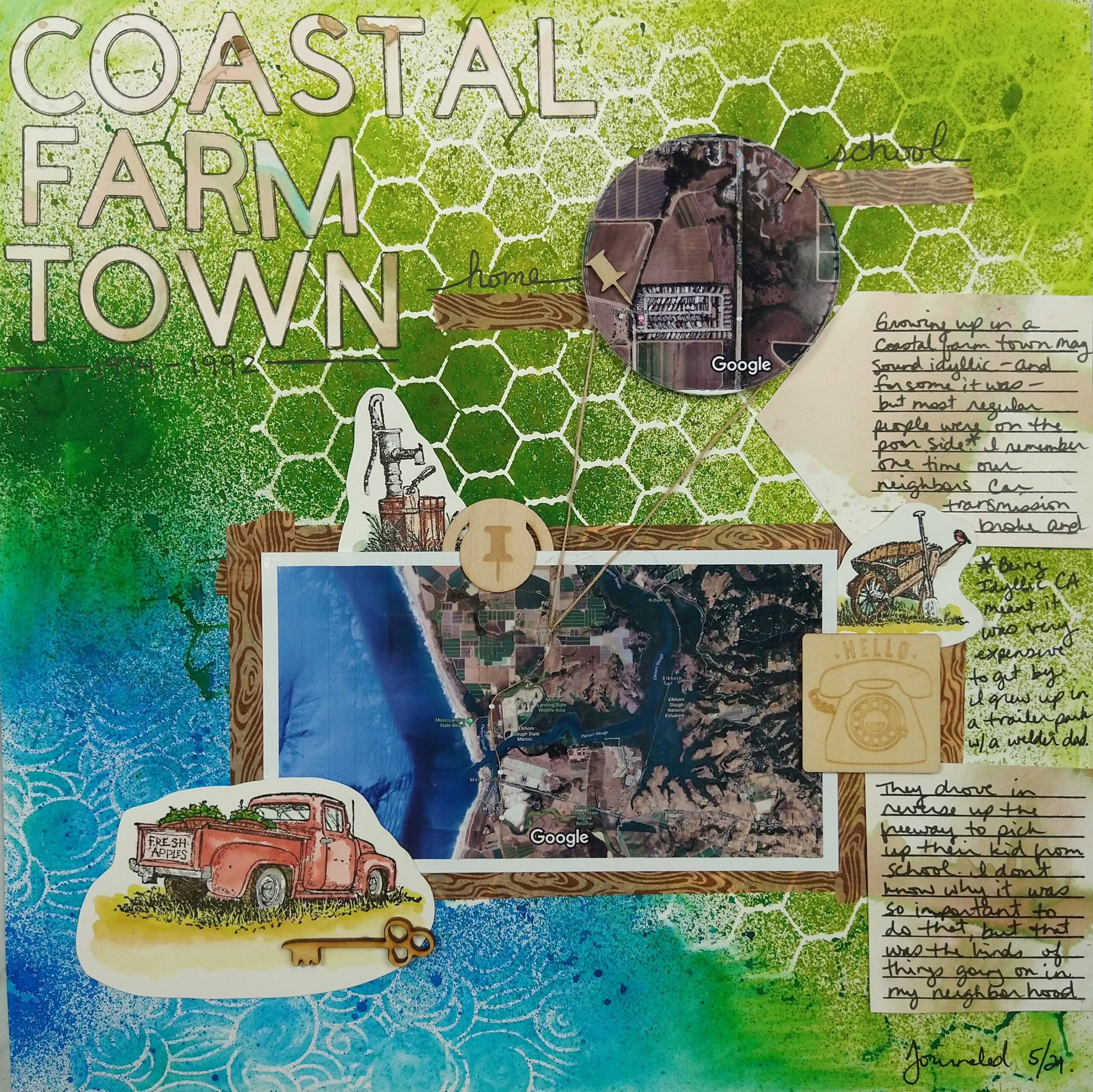 - Don’t have a photo that goes with a memory? Use the internet to download and print photos that relate to your story. That top left pool photo I grabbed off their website!