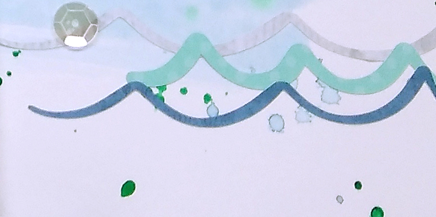 Before I dive in (ha-ha pun intended) to my work for this month, lets take a look at some of the water inspired techniques the design team has shared on the blog so far. Alison highlighted easy watercoloring. April used a wonderful stencil to get a reflective water look on her card. And the most recent post by Kathy took us through a whole history of watery goodness, with a great technique on using watery style filters for your photos.