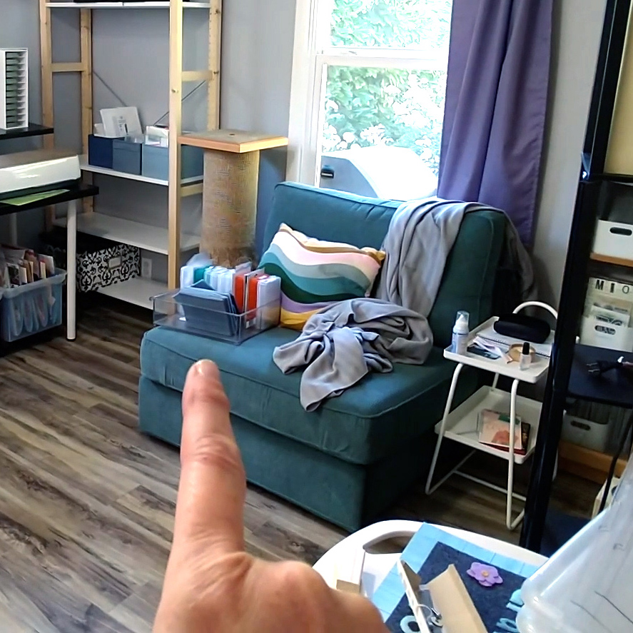 My room, like many crafters’ spaces, needs to serve more than one purpose. This room actually still needs to be a spare room for when my middle kid comes home to visit. That meant another creative solution. Fortunately, Ikea did all the creative thinking for me. I bought this sidechair that folds out into a small twin size bed.