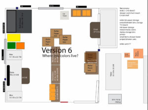 Lesson: A to-scale floor plan is super helpful if you are doing a larger organization project. Grid paper or Canva can be helpful for this.