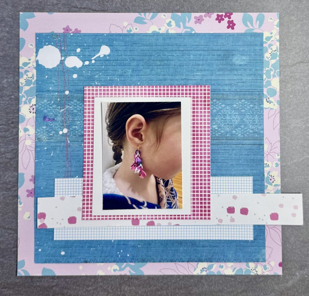Same sized squares on the left and two used to back the photograph, add embellishments and you have a quick and easy layout. But here is the good news, I still had scraps leftover and I decided to see what I could come up with.