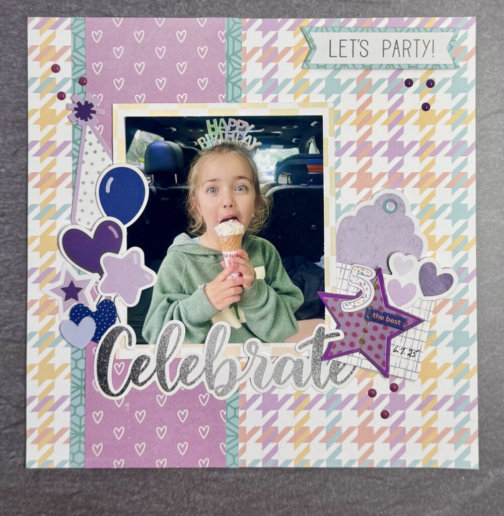 My next go to element are shapes, squares and rectangles are my favorite, but I do try to mix it up with circles and triangles to keep my designs fresh. Here is an example of squares on this sweet layout.