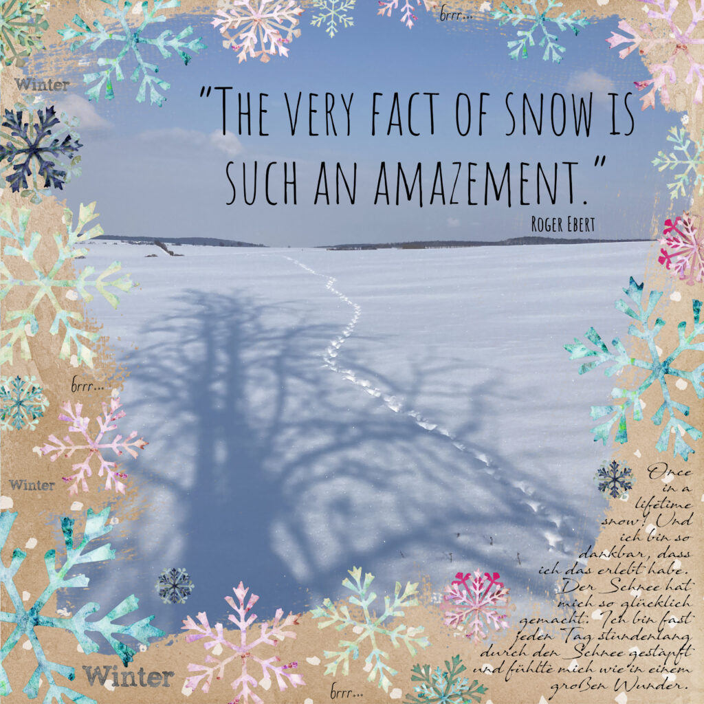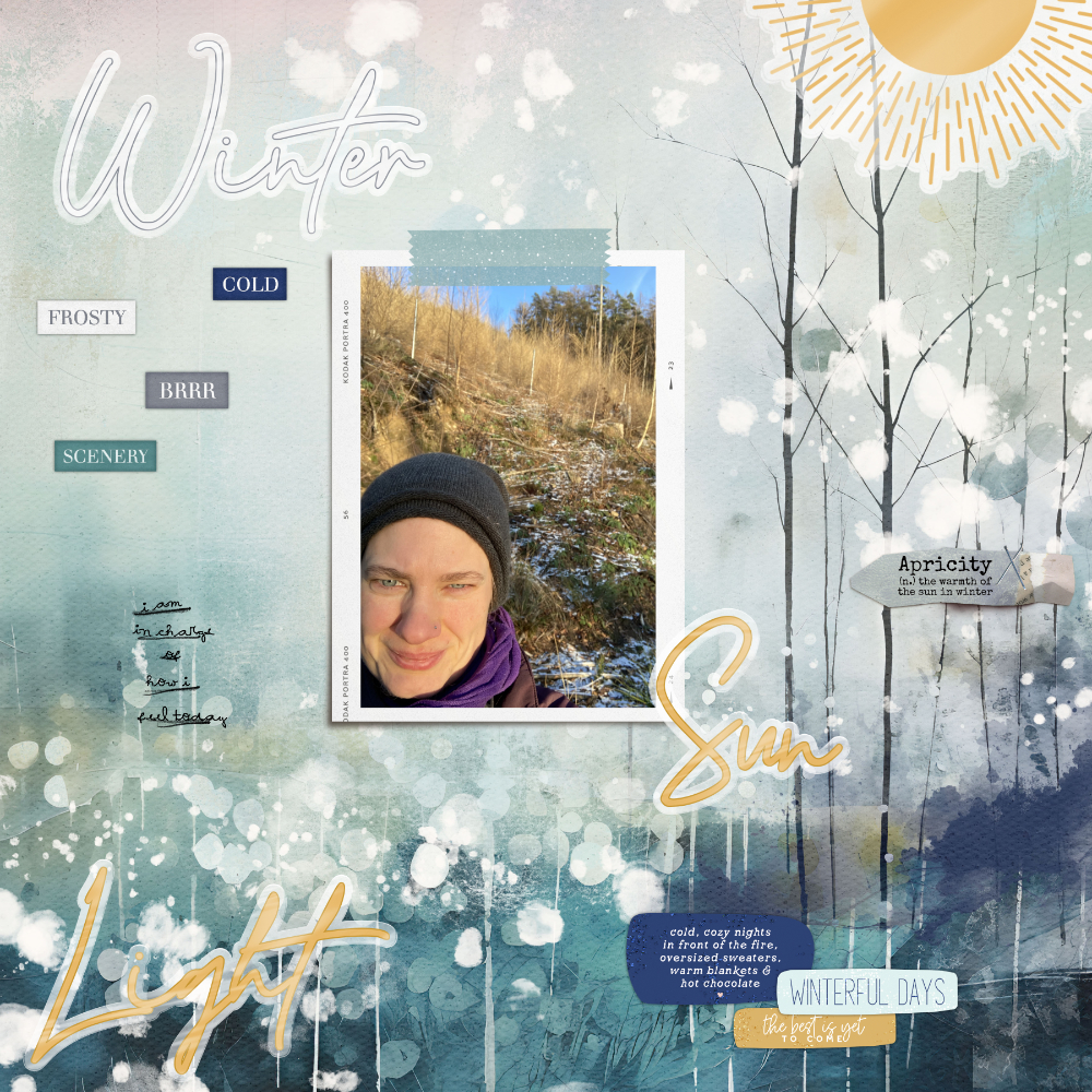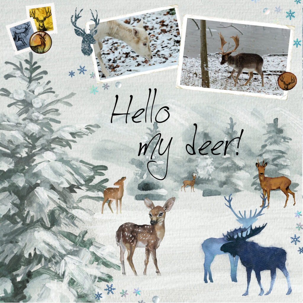 On the page with all the deers it is more obvious that it was the plan to use all kinds of different deer elements, I think. Snowflakes seem to come more naturally as a scatter. 😉 But this can also make a page really special. It was really fun to create that little landscape with them.