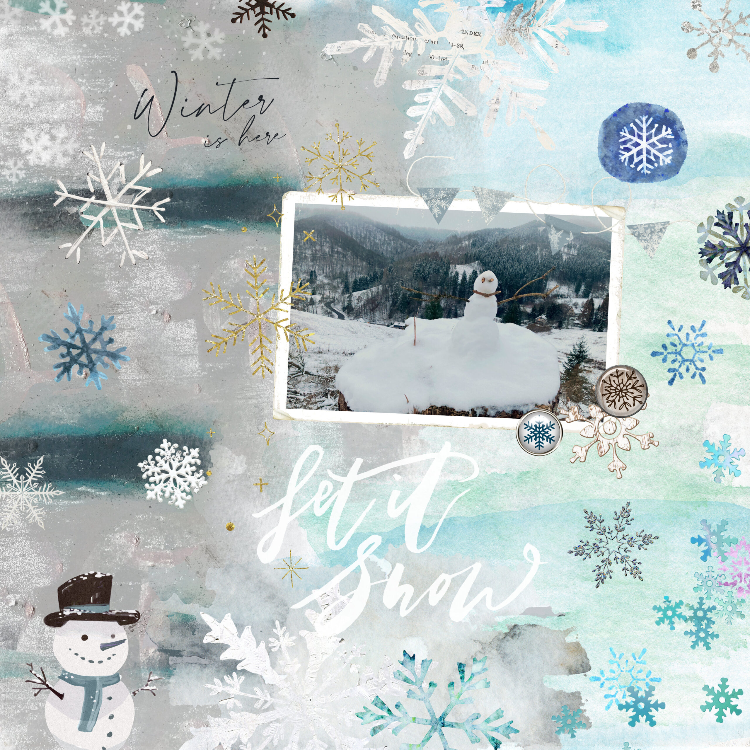 The snowflakes in the third page are all the same kind, just different colours. Besides some small wintery wordarts the snowflakes are the only elements used here.