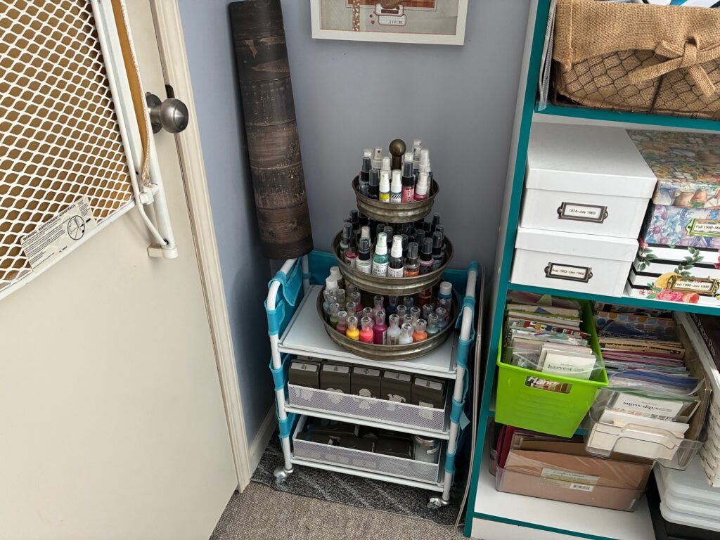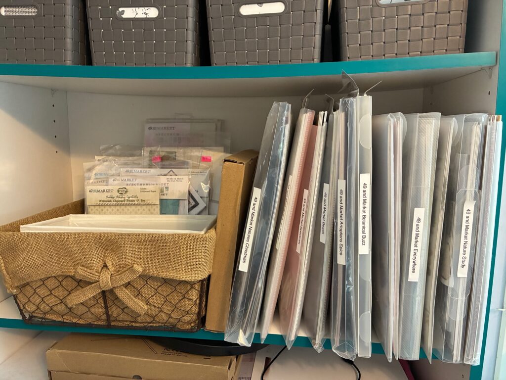 That thought became a powerful motivator. I realized how much I had accumulated over the years, more than 30 years of paper, embellishments, tools, kits,”someday” and unfinished projects. It inspired me to start purging supplies I no longer use or truly love. Letting go has been difficult, but also freeing. Instead of feeling like I’m losing something, I’m gaining space and peace of mind.