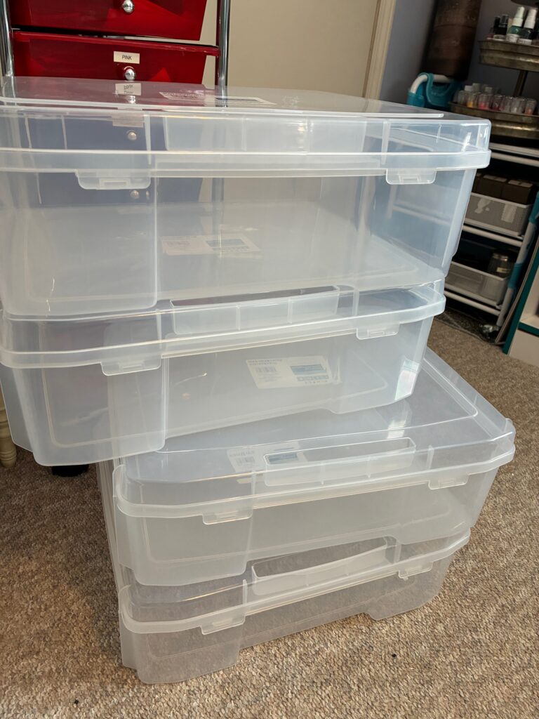 Along with purging came a renewed commitment to organization. I want my space to be functional, easy to navigate, and less overwhelming, not just for me, but for anyone who might need to manage it someday. Labeling, sorting, and grouping supplies by category has helped transform chaos into something calmer and more approachable. In order to do that I needed to purchase new storage cases, as if I didn’t have enough already. Lucky for me I had been gifted several gift cards for Michael’s and they were on sale, 50% off! Even better!