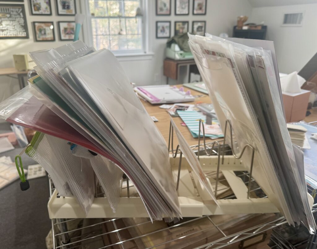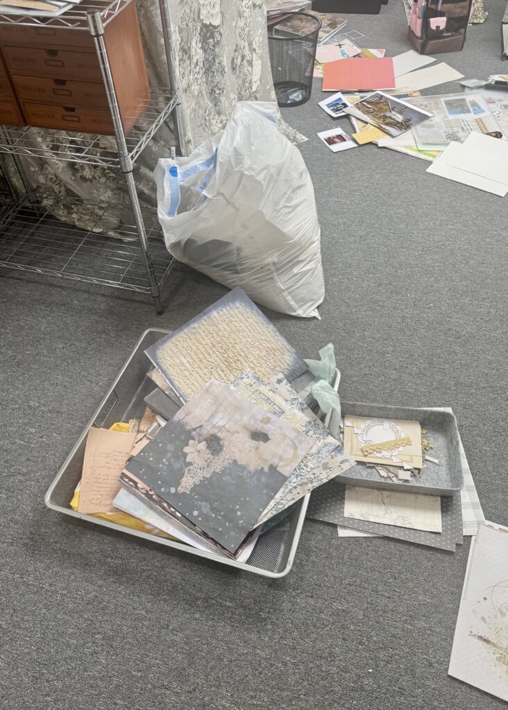 How did this happen? Here are my thoughts, I purchased a lot of product this past year cause I was set to master all the things, particularly mixed media. I purchased many storage products that were not conducive to a Ladybug’s style and I fell back into micro-organizing once again. The larger problem in my case is that everything has the potential to become art, ultimately I’m always looking for the sweet spot with my supplies. Going forward I will say a couple of Hail Mary’s as I dumped excess “stuff” in the recycling bin.