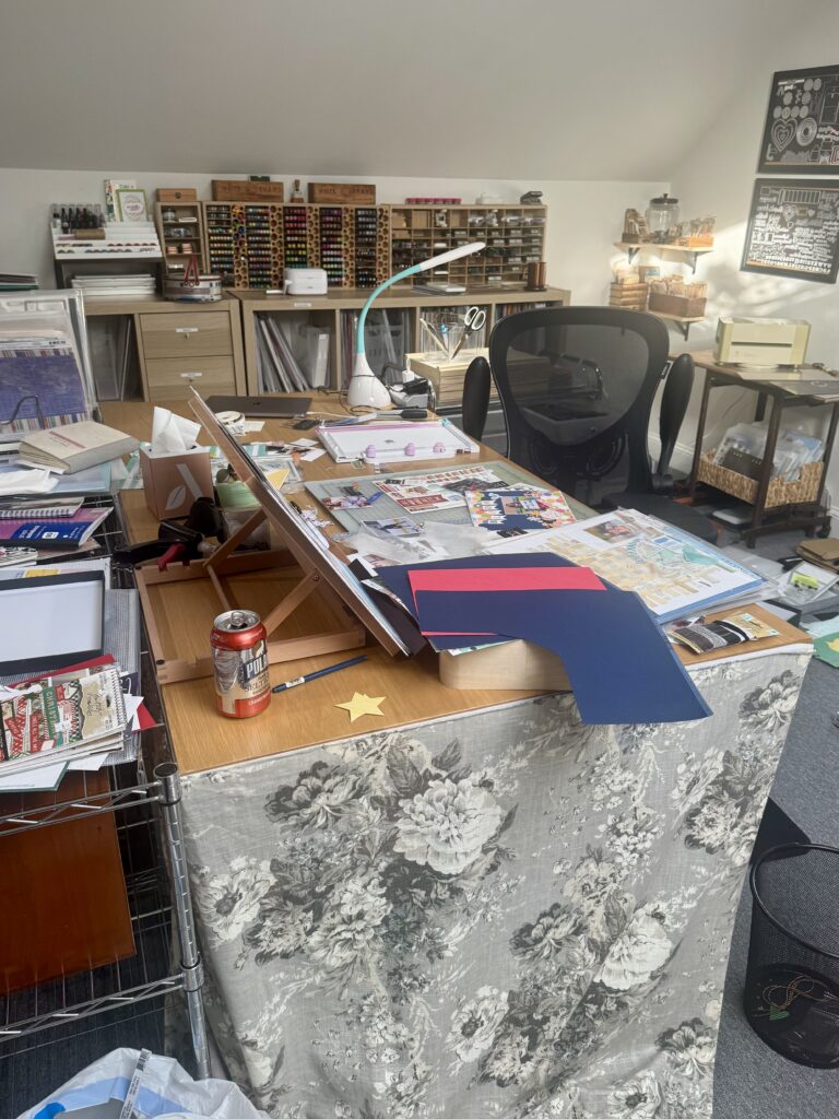 This photo was taken last March, nothing on the floors, my desk is in good shape, and my supplies are contained in large bins, micro-organization is a huge no-no for Ladybugs. I’m going to love crafting in this gorgeous space right?