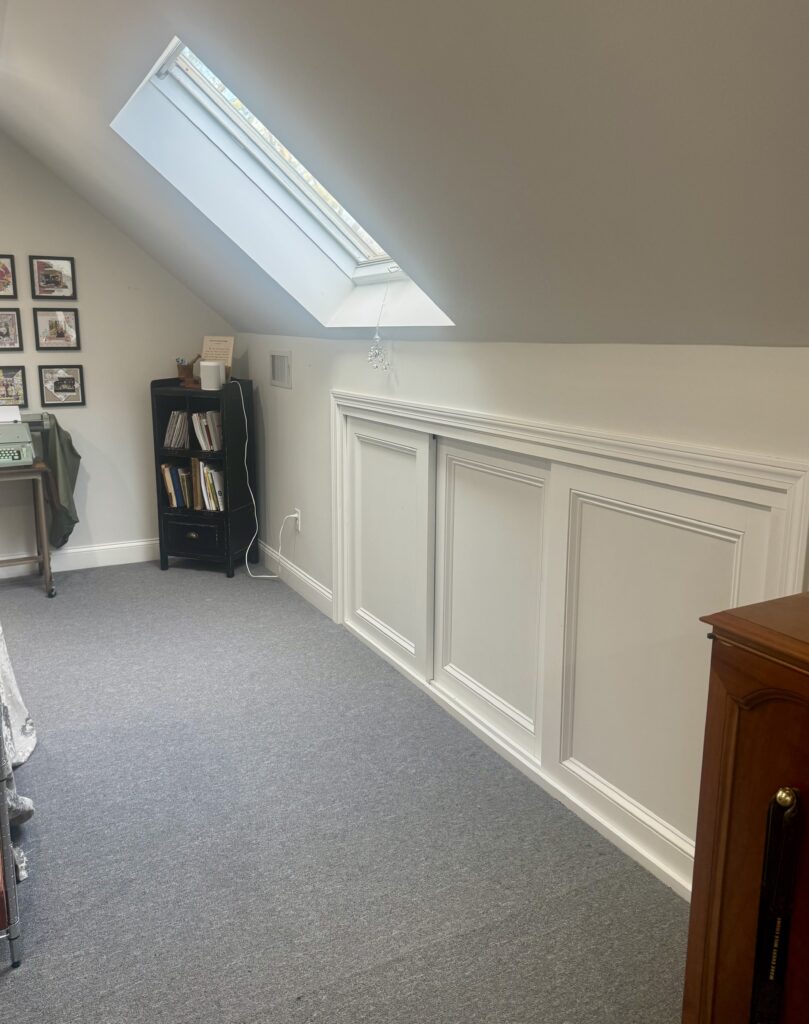 Don’t we all love a good before and after photo? This was a massive labor of love. I really took a hard look at how I use my supplies, what I use on a regular basis and why do I need to get all the new things when I always go back to my tried and true goodies. I still have some areas that need help but I now enter my space feeling light and ready to create. Molly the American girl doll is keeping a sharp eye on me.