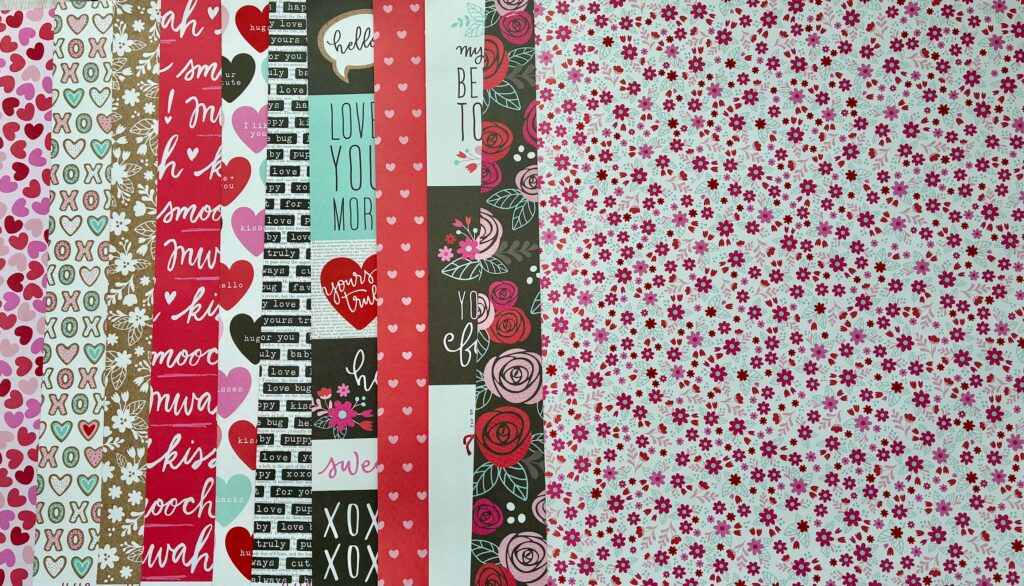 February may be known for hearts and flowers, but love shows up in our lives all year long. I don’t have very many Valentine specific kits. I never felt the need for them. However, some of you may. So don’t pack them away once March arrives. Look at them as collections of color, patterns and all the possibilities. Don’t get stuck using the kit only as it was intended.